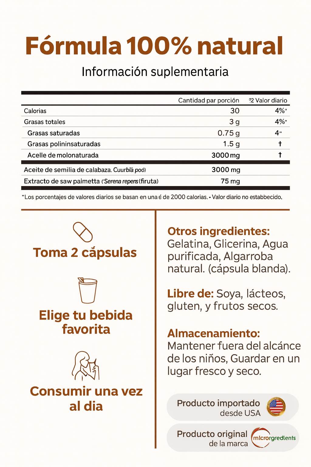 ✅ Fórmula: 2 en 1 con Saw Palmetto